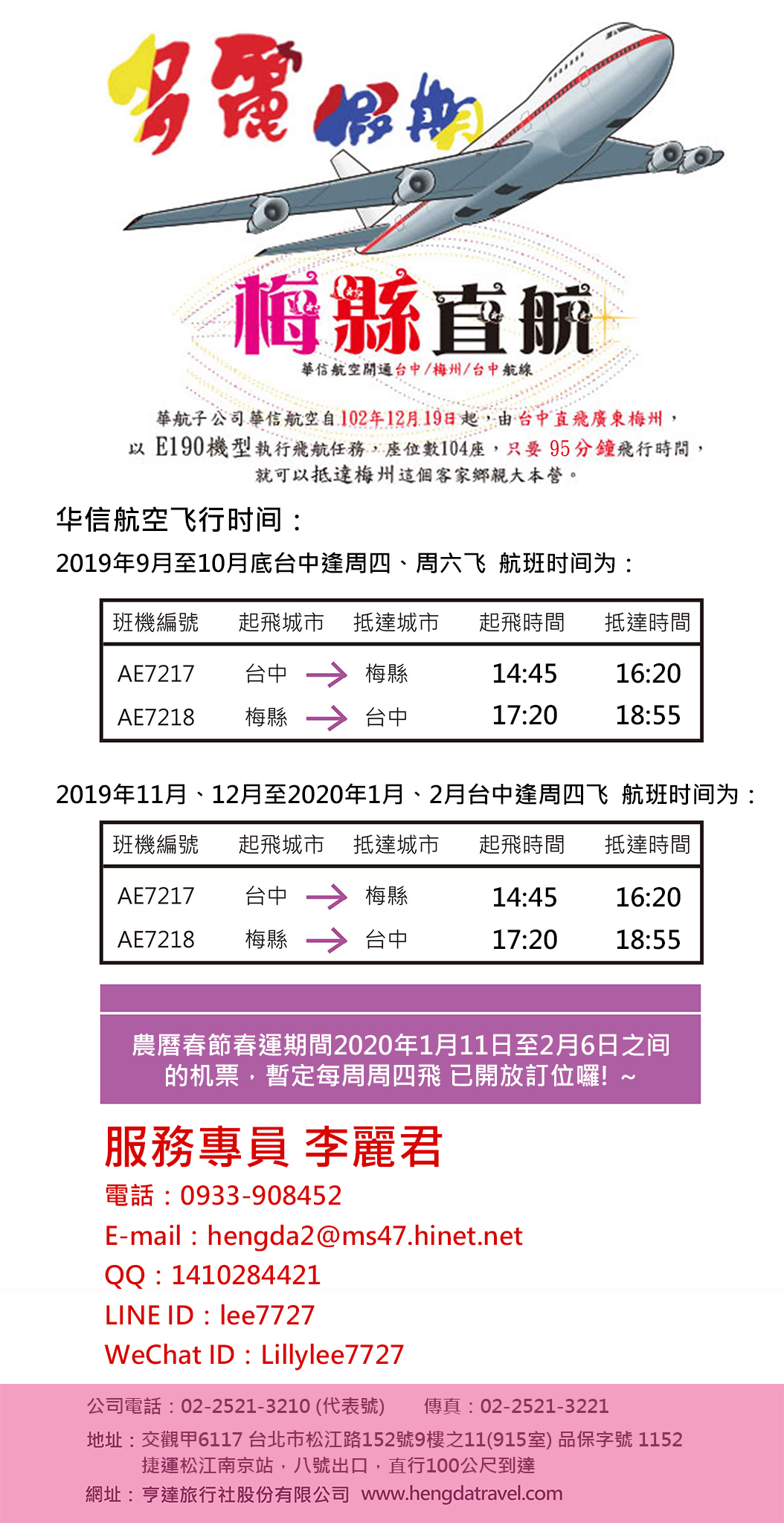 農曆春節春運期間2020年1月11日至2月6日之间的机票,暫定每周周四飛 已開放訂位囉! ~